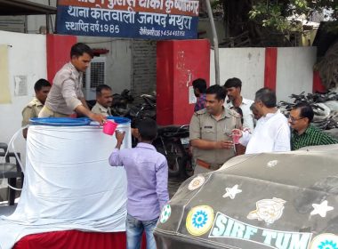मथुरा पुलिस दर्शनार्थियों के लिए कर रही शीतल जल की सुविधा