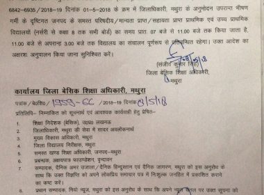मथुरा बीएसए ने 7 से 11 बजे तक खोलने का दिया स्कूलों को आदेश